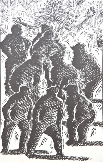 paintings, woodcuts and collagraphs