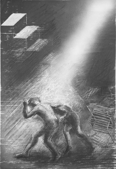 23 1/2X15 1/2 Charcoal, ink and oil paint on block print 2008